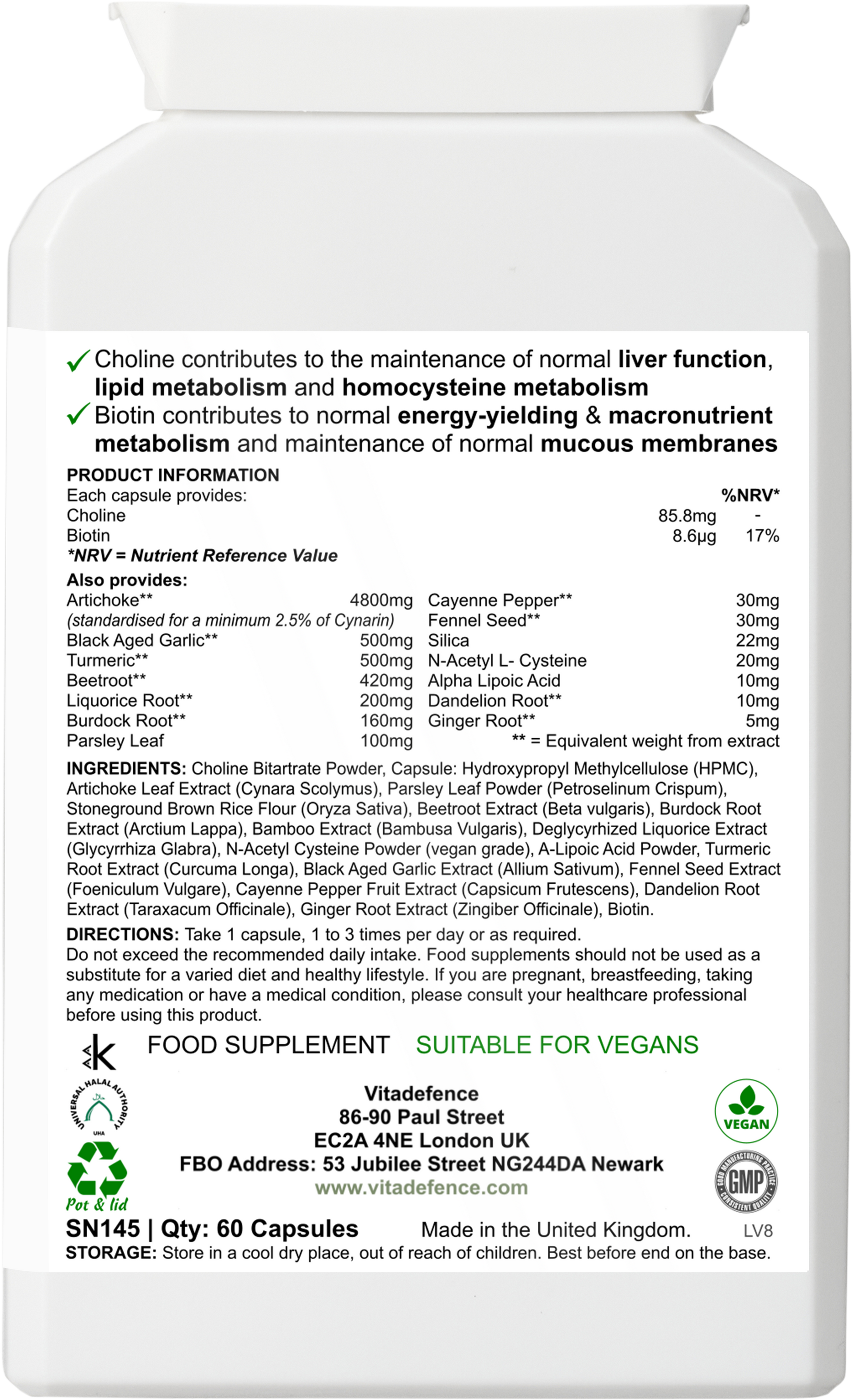 A thoughtful combination of choline, biotin, and traditional herbs including aged garlic, turmeric, and beetroot for broad-spectrum wellbeing.