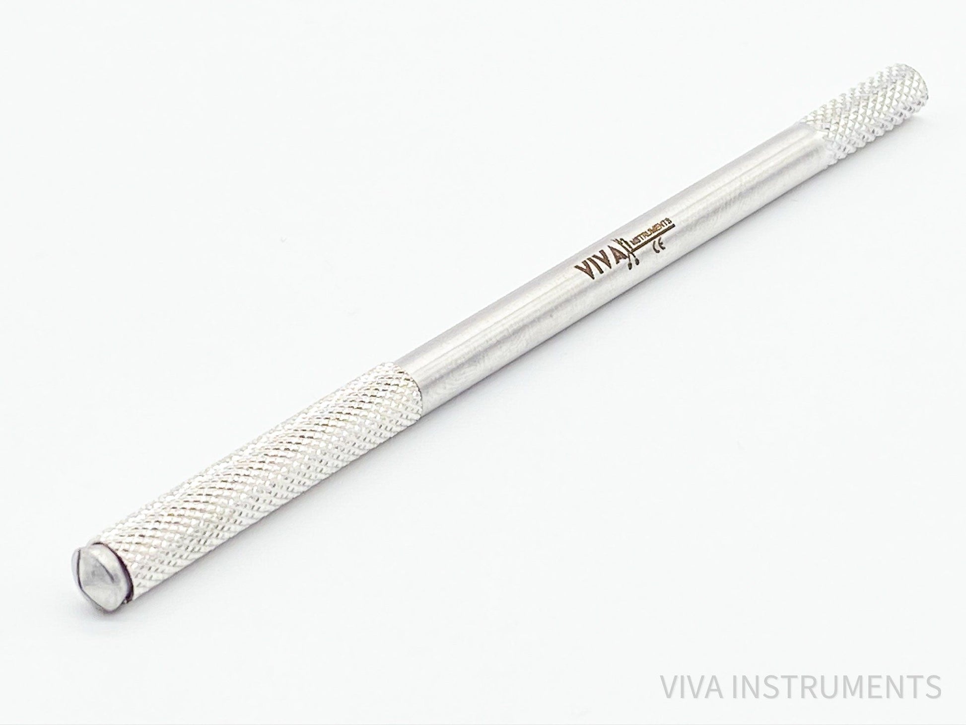The Beaver handle is a specialized scalpel handle designed for use with Beaver-style blades, which are smaller and more precise than standard scalpel blades. It features a unique, ergonomic design with a textured grip for enhanced control during microsurgical procedures. The Beaver handle is commonly used in ophthalmic, plastic, and reconstructive surgeries, where precision and minimal tissue trauma are critical. Its stainless steel construction ensures durability and compatibility with sterilization processes.