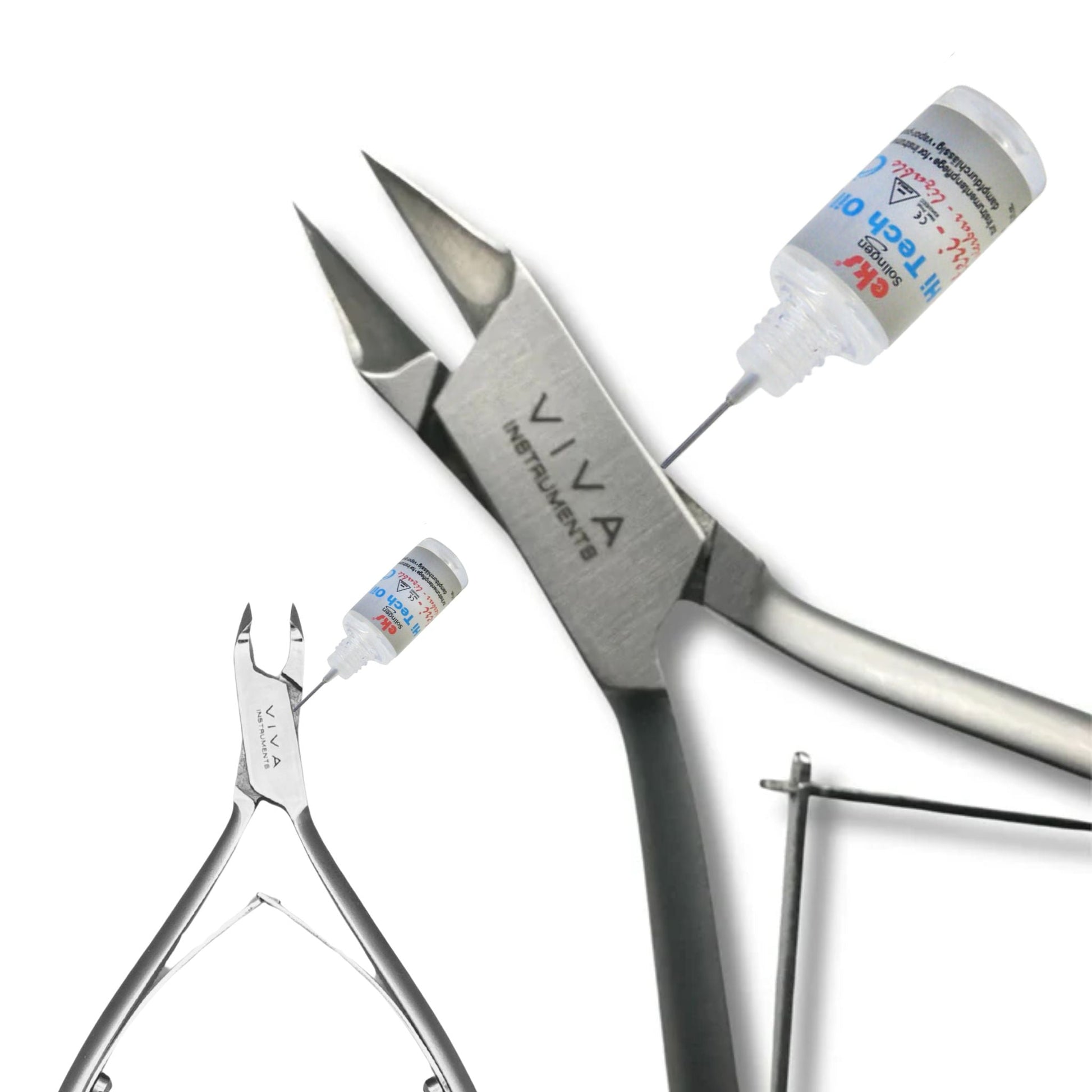 EKS Instrument Oil serves as a maintenance lubricant for hinged surgical and beauty instruments such as nail clippers, forceps, nippers, and scissors. It features a dropper tip and has a capacity of 10 ml. This synthetic instrument oil is colourless, free of silicone, and completely odourless. It is heat-resistant, functioning effectively at temperatures of up to 260° C, and it neither sticks nor leaves stains. EKS instrument oil is suitable for potential sterilization and comes in a convenient maintenance pen applicator.