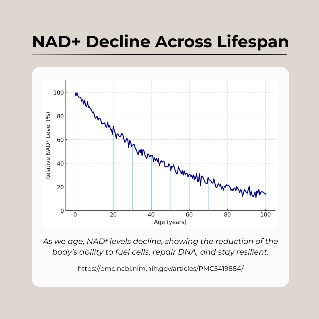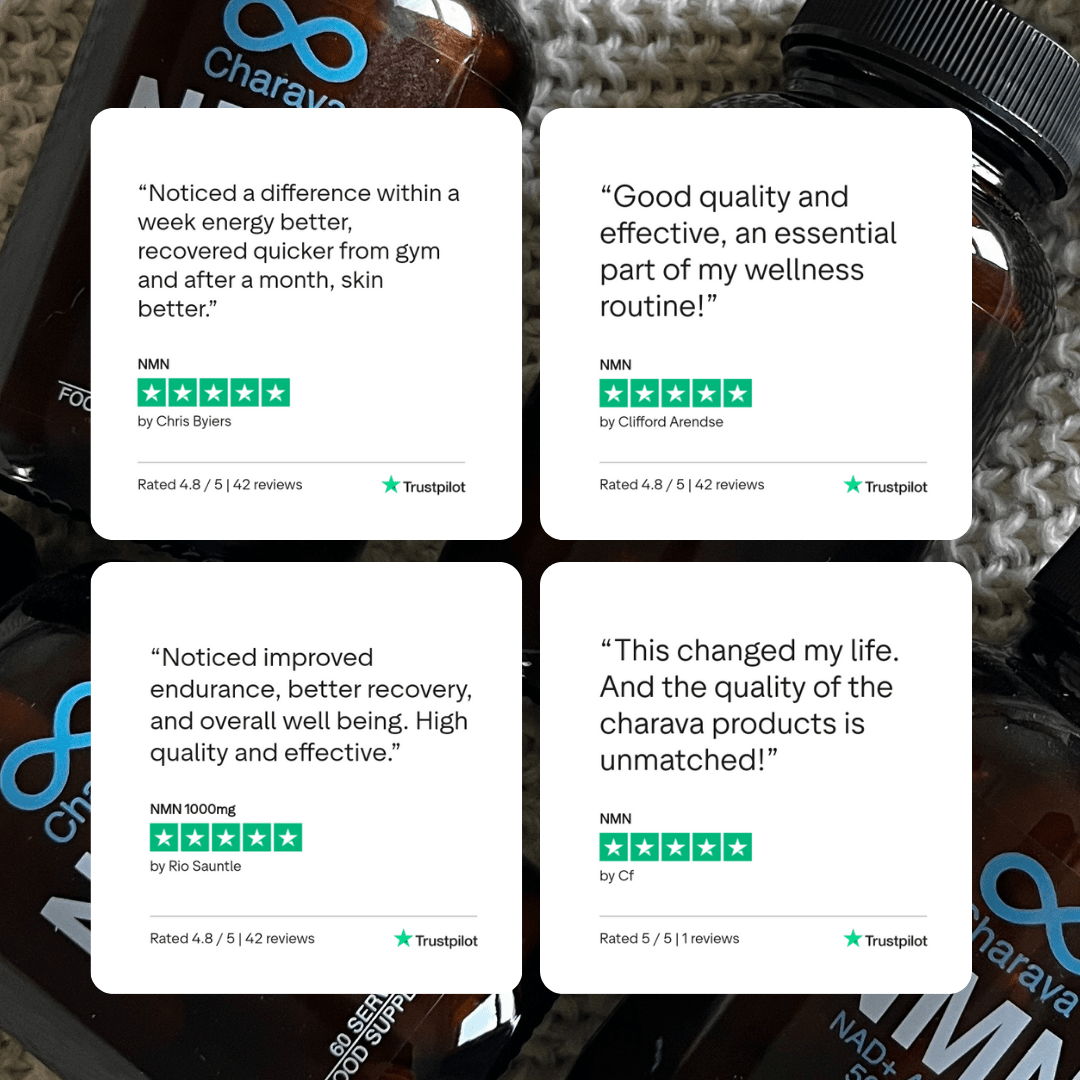 NAD+ levels naturally decline with age, slowing down the speed and accuracy of DNA repair and impairing energy utilisation capabilities at a cellular level. By boosting your NAD+ levels, our Charava NMN can help combat these age-related symptoms, promoting healthy ageing and longevity.