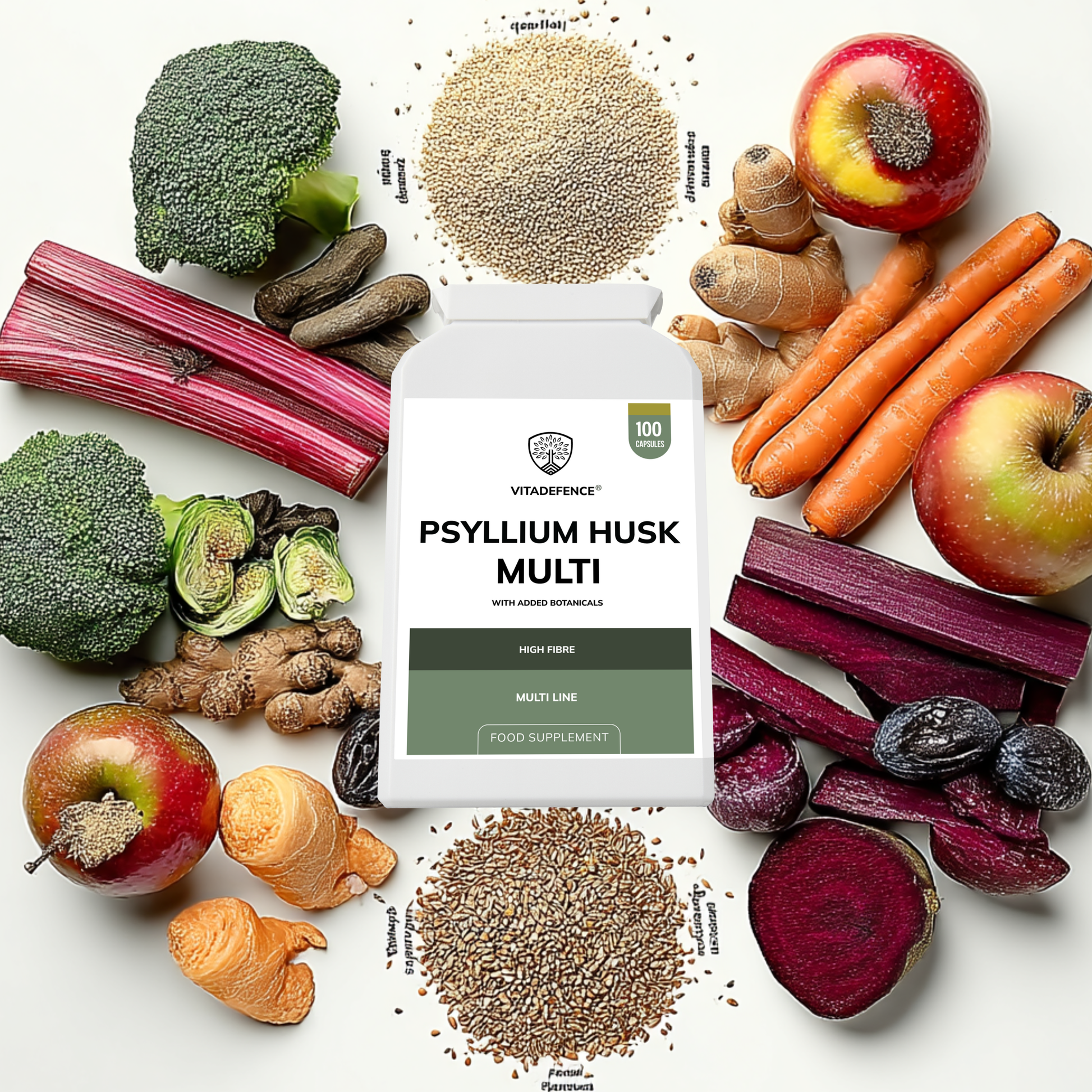 Boost your daily fibre intake with Vitadefence Digestive Fibre Complex - 11 natural ingredients providing substantial fibre nutrition