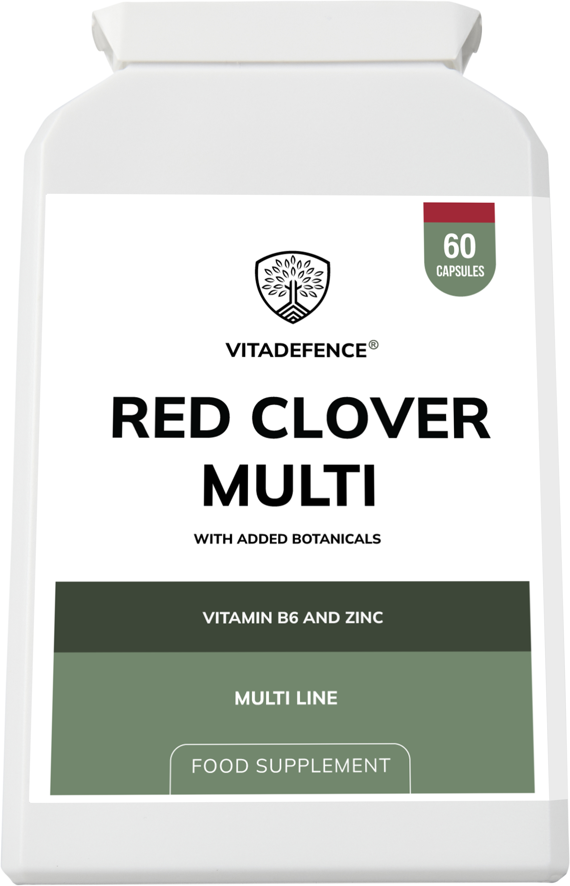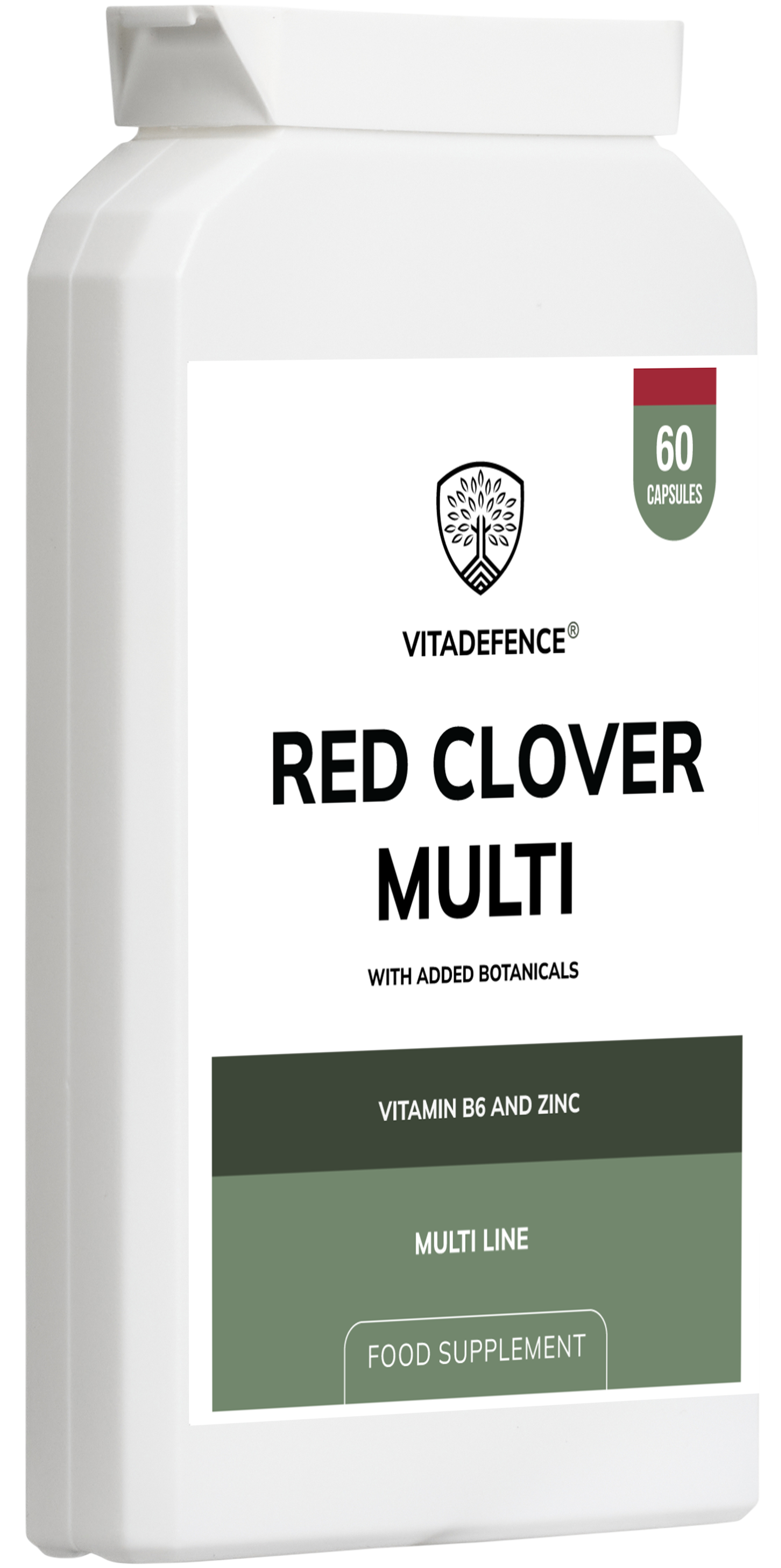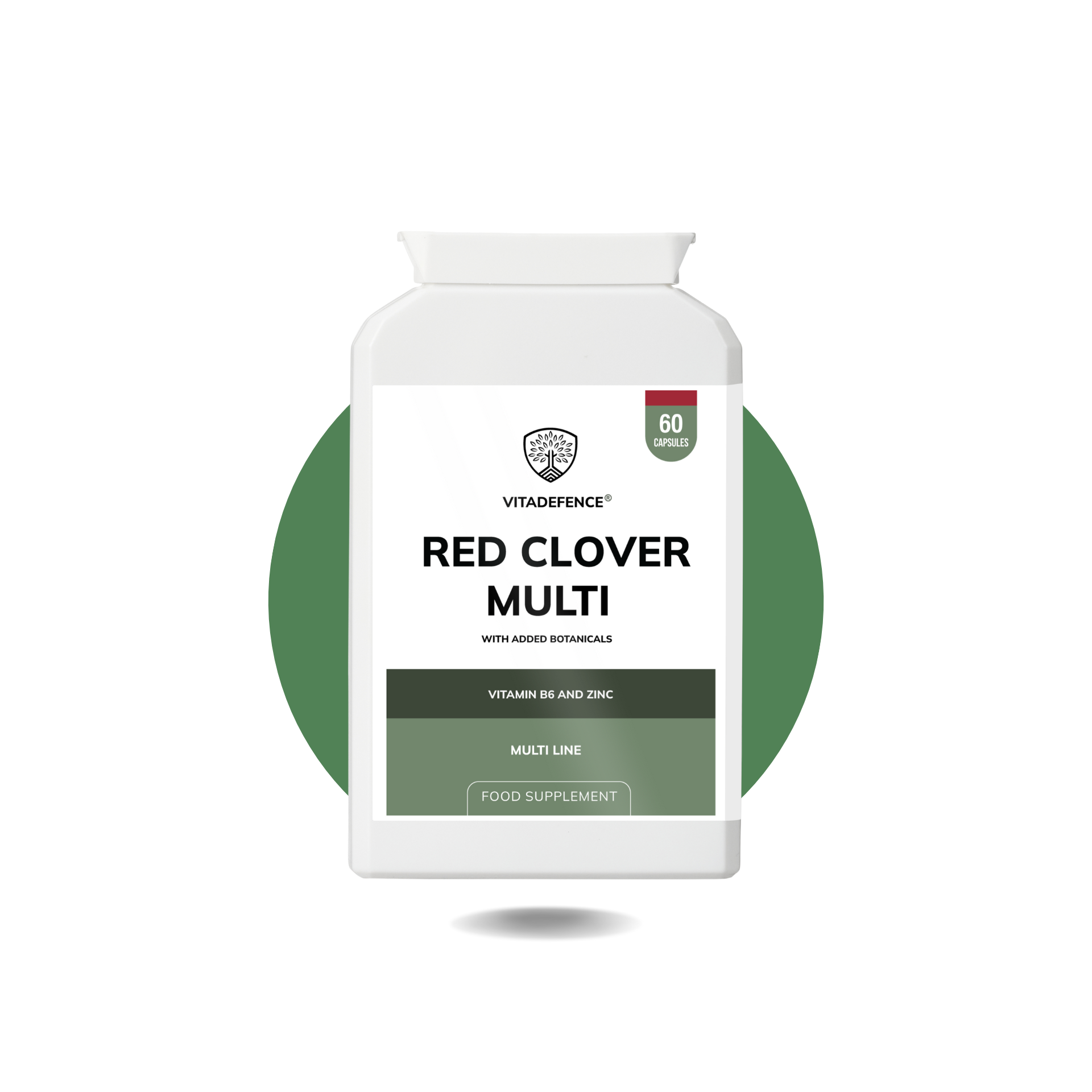 Vitadefence Red Clover Multi combines red clover, wild yam, bamboo, sage leaf, and schizandra berry with vitamin B6 and zinc.