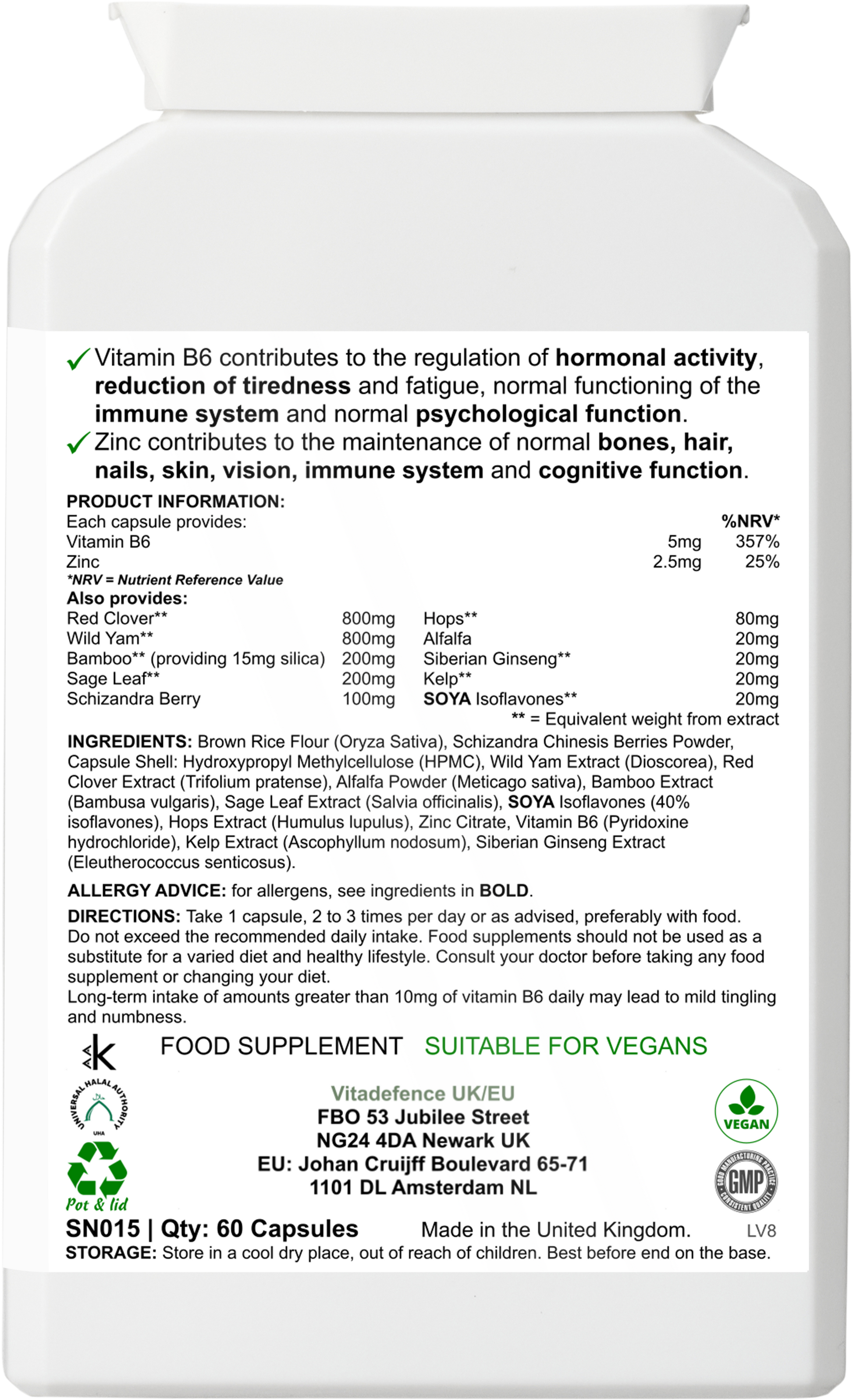 Vitadefence® Red Clover Multi | With Vitamin B6, Zinc, Sage & Siberian Ginseng – 60 Capsules