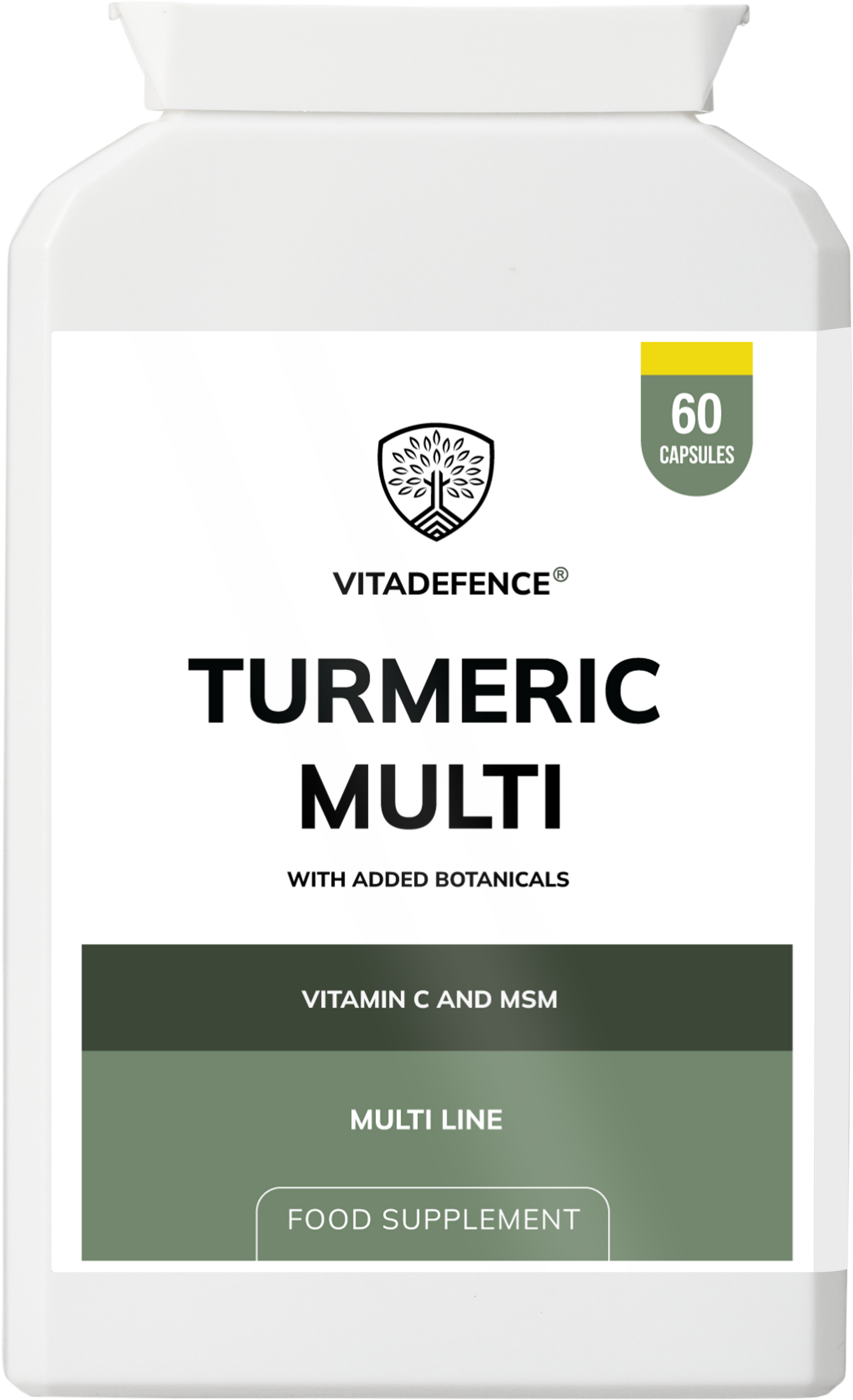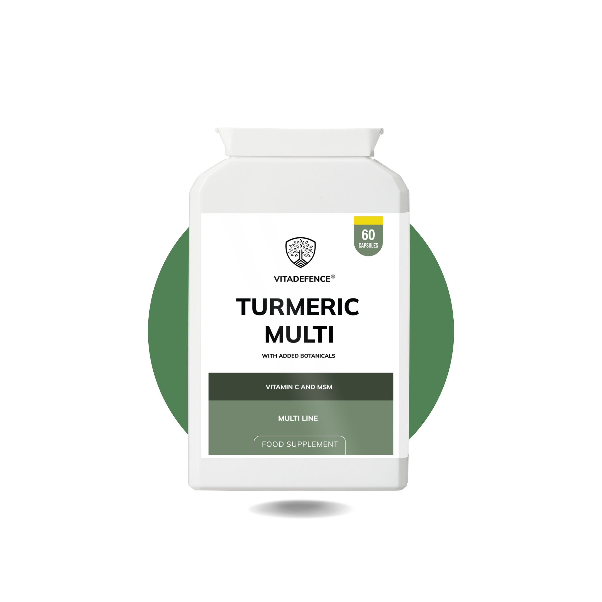 Vitadefence Turmeric Multi combines turmeric root and extract with ginger, bamboo, cayenne, and black pepper.